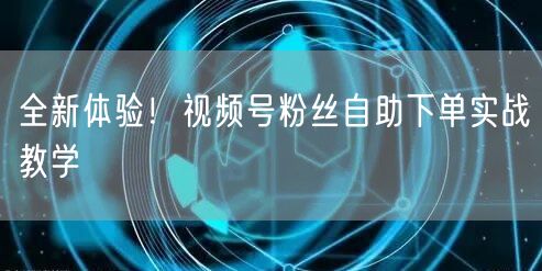 全新体验!视频号粉丝自助下单实战教学